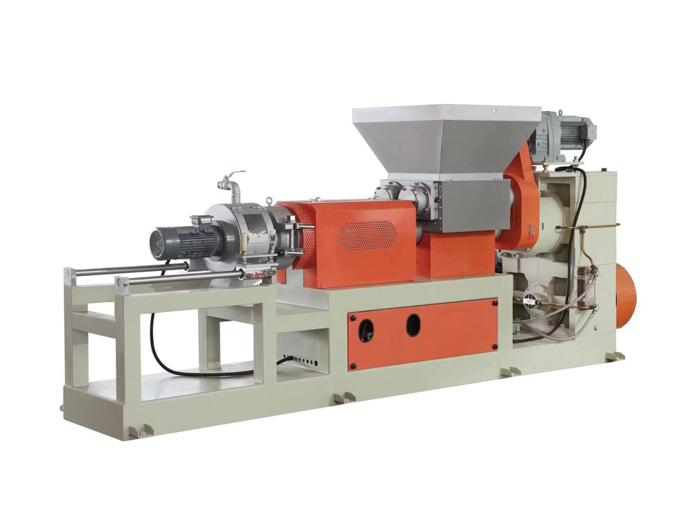 此機(jī)臺(tái)用于PVC,EVA,TPR等塑膠原料的生產(chǎn),包括主機(jī),雙腕入料,模頭切粒等系統(tǒng)將密煉機(jī)攪拌好的原料經(jīng)雙腕擠入造粒機(jī)內(nèi)經(jīng)螺桿擠出后切成粒子,此機(jī)臺(tái)操作簡(jiǎn)單